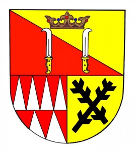 Pravé horní pole je nakoso dělené, nahoře zlaté, dole červené. Přes toto dělení stojí dva vinařské nože se zlatými střenkami, čepele s dolů stočenými špicemi směřují vzhůru a směrem ven. Nad nimi je zlatá koruna královská (znak rodu Dietrichsteinů).